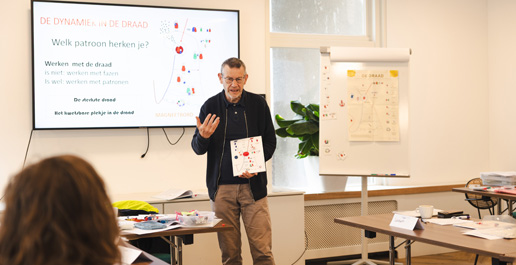 In de cursus leer in je in een kleine groep (maximaal 15 deelnemers) hoe je de methode “De Draad” methodisch in je eigen praktijk kunt gebruiken.
